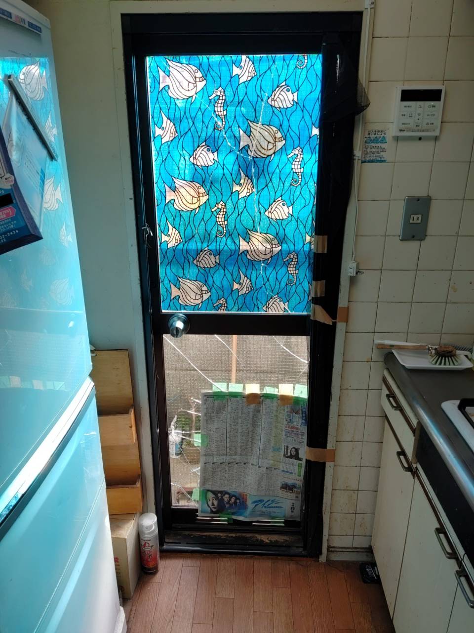 世田谷区にて勝手口ドアを修理しました。 2025/03/19 みなさん、こんにちは。 先日、世田谷区のお客様から「転倒した際に勝手口ドアのガラスを割ってしまったので、修理してほしい」 とのご依頼がありました。 また、ドアの下部はガラスではないものをご希望されていたので、アルミと樹脂を組み合わせたアルミ複合版を ご提案し、ドアの上部は今まで通りガラスにしました。 下の写真はbefore after です。 before after ドアの下部がガラスではなくなったので、安心したと喜んで頂きました。 このような勝手口ドアの工事等のご依頼ご相談など大歓迎ですので、お気軽にご連絡ください。 お問合せはこちら お電話でのお問合せはコチラ 03-3322-5911 内装工事